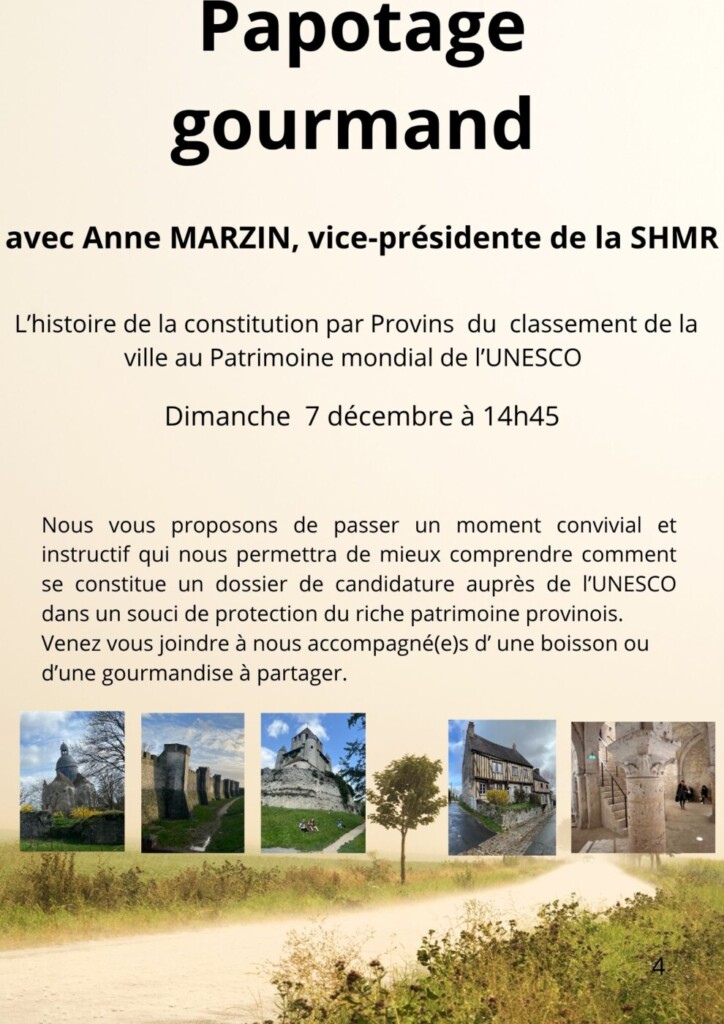 Papotage gourmand « Provins à la conquête du classement au Patrimoine mondial de l’Unesco : 7 décembre à 14h45